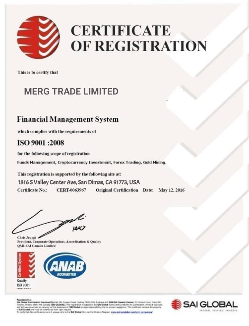 Merg Trade Limited is a registered United Kingdom Company: Prospectus Company Certificate.